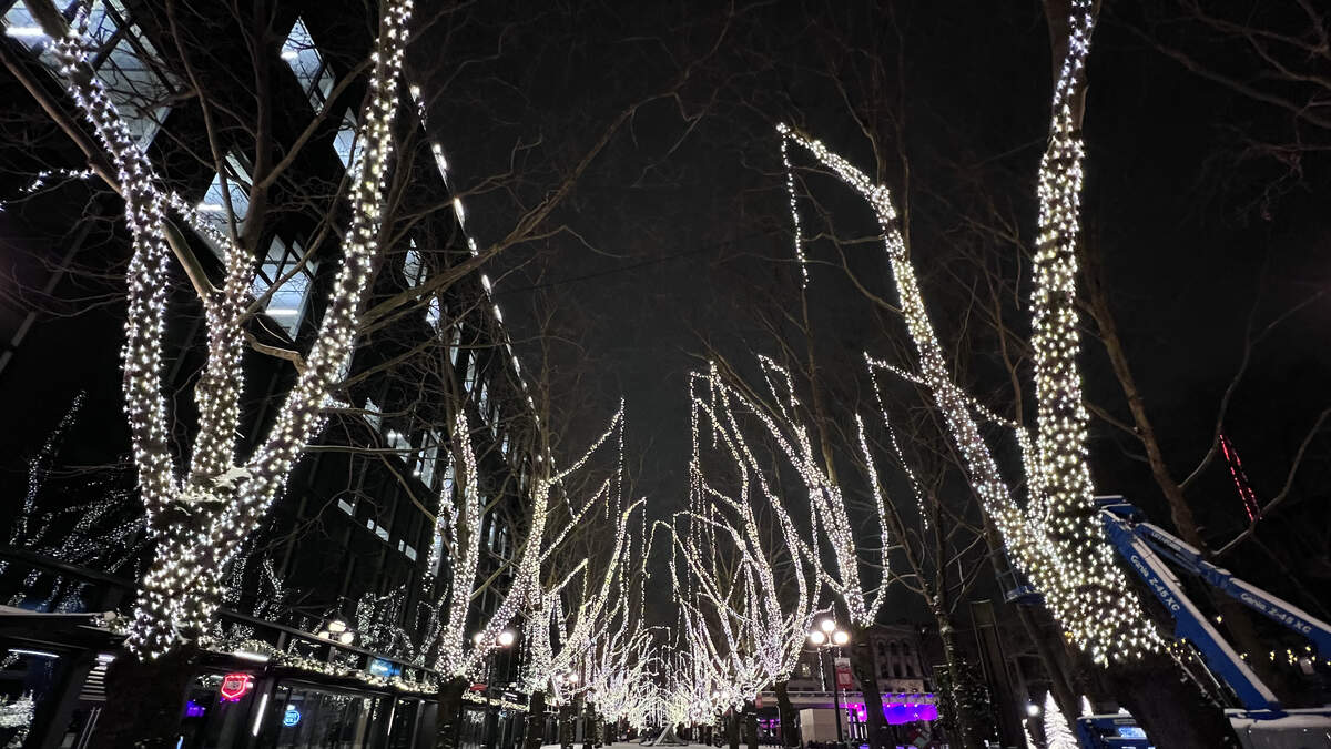 Durante 12 minutos, los espectadores pueden disfrutar de una brillante exhibición de drones sincronizados que crean formas y diseños navideños en el centro de Orlando.